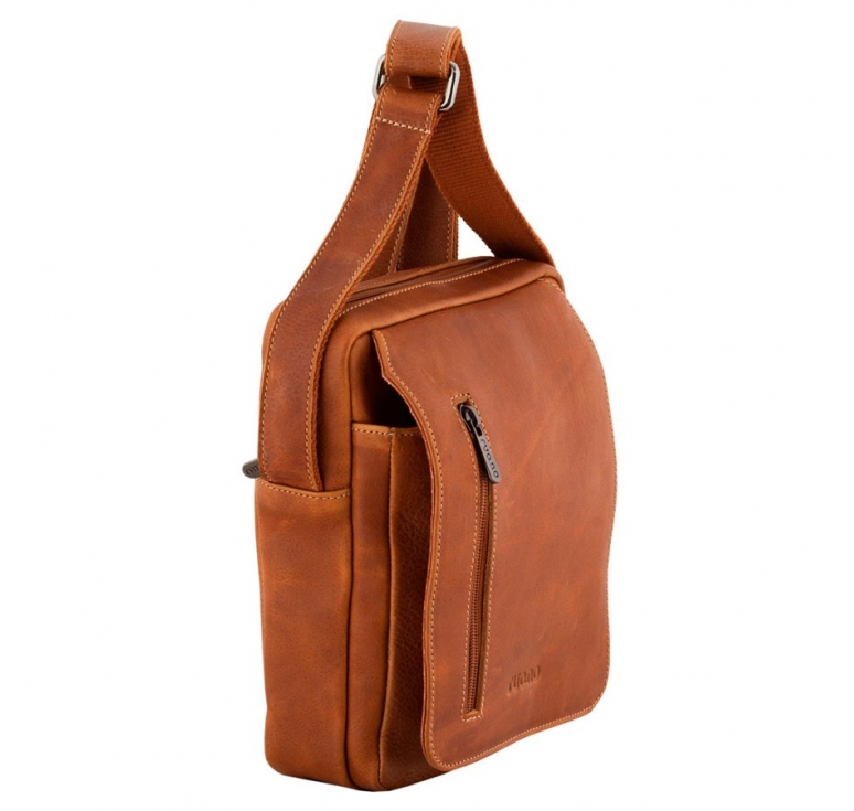 Bandolera de piel artesanal de diseño exclusivo fabricada en España en color marrón