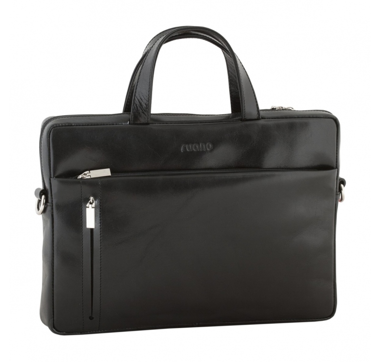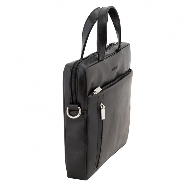 Esté portadocumentos de piel dispone de un compartimento central para documentos, Ipad y complementos con cierre superior de cremallera. Dos bolsillos delanteros uno en horizontal y otro en vertical para otro tipo de accesorios, también con cierre de cremallera. Además de asa de mano y asa bandolera.