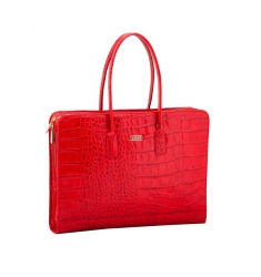 Un portadocumentos de piel en color cuero con grabado de letras para mujer.